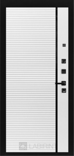 Фурнитура в черном цвете: Броненакладка врезная, накладка со шторкой, глазок , дверная ручка, ночная задвижка. Цилиндр ключ-вертушка Apecs, регулируемый эксцентрик.