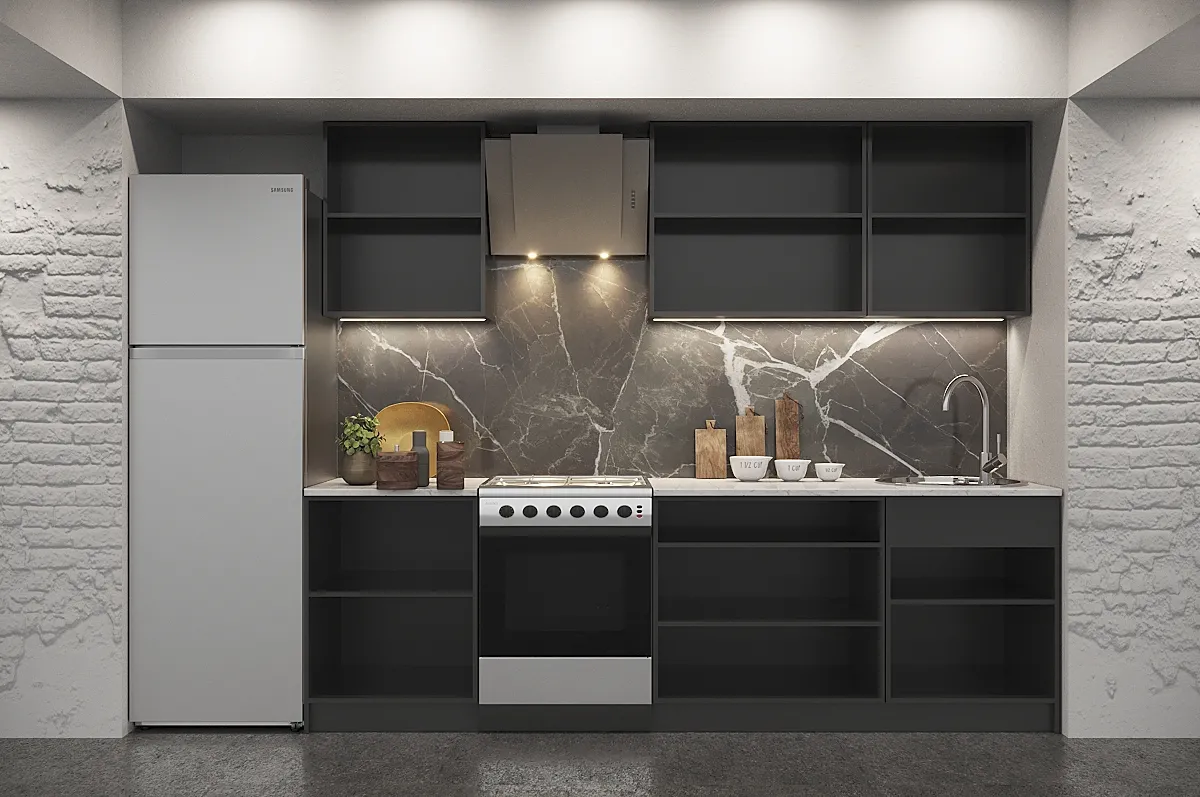 Столешница дополнена тёмным глянцем "Кастилло", "Мрамор Марквина черный" или снова глянцем "Кастилло", толщиной 38 мм, что обеспечивает долговечность и устойчивость к механическим воздействиям. Кухонный гарнитур Белль обладает брутто массой 192.59 кг и объемом 0.39083 куб.м., демонстрируя качественный подход к изготовлению и продуманность каждой детали. Завершением данного произведения кухонного искусства выступает производитель — Группа компаний кухни, гарант качества и утончённости. Выбирая Этот гарнитур, вы выбираете комфорт и эстетическое удовольствие для вашей кухни.